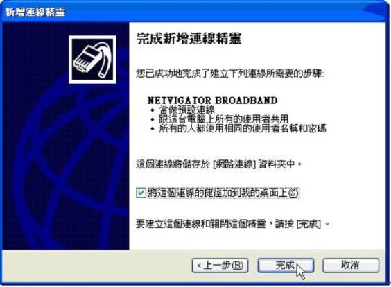 11. 點選"將這個連線的捷徑加到我的桌面上"然後按"完成"