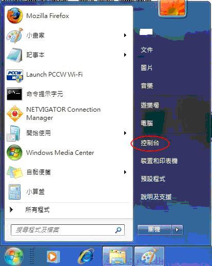 1. 點擊桌面左下角"開始",然後按"控制台"