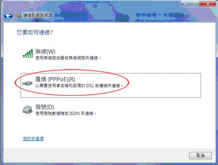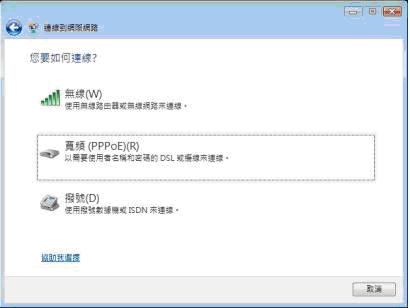 4. 選擇利用 “寬頻 (PPPoE)(R)” 來連線