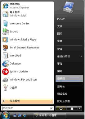 10. 接駁軟件設定完成後,按一下視窗圖示並選擇 “連線到”