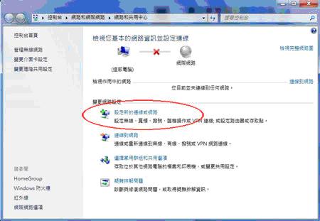 4. 在左手邊"網路工作"下點擊"建立一個新連線"
